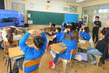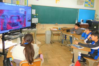 自動車が出来上がるまでの工程について、映像を通して分かりやすく説明していただき、子供たちは製造の仕組みに大きな関心をもって耳を傾けていました。また、ジェスチャーで回答するクイズにも楽しそうに参加し、画面越しでも積極的に学ぼうとする姿が見られました。