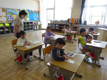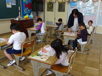 教頭先生との書写も始まりました。今日から給食も始まります。