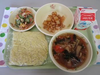 2月2日(月) 広東めん(ソフトめん 広東スープ) 牛乳 スパイシーポテトビーンズ バンバンジーザラダ(バンバンジードレッシング) 広東めんのスープには、コリコリとした食感が特徴の「きくらげ」が入っています。ここできくらげについてのクイズです!きくらげは、次のうち何の仲間でしょうか? ①海藻の仲間(わかめなど)、②きのこの仲間(しいたけなど)、③クラゲの仲間(海の生き物)…正解は②きのこの仲間。漢字では「木耳」と書き、木に生えた耳のように見えることからその名がつきました。きくらげには、骨を強くするのを助けるビタミンDや、おなかの調子を整える食物繊維がたっぷり含まれています。先週は給食パクパク週間でした。自分の目標は達成できたでしょうか?今年度の給食も残り32回です。苦手な食べ物にもチャレンジして、食べられる料理が増えるといいですね。 |