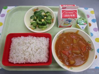 2月6日(金) カレーライス(麦ごはん チキンカレー) 牛乳 チーズサラダ(イタリアンドレッシング) ミニ洋梨ゼリー 今日2月6日は「ふろ(風呂)の日」です。寒い日が続いていますが、みなさんはシャワーだけでなく湯船に浸かっていますか?お風呂でゆっくり体を温めると血行がよくなり、疲れをとることができます。実は、今日のメニュー「チキンカレー」に使われているスパイスにも、血行をよくして体温を上げ、体の抵抗力を高めてくれる働きがあります。今の時期は、ウイルスによる感染症が流行しやすいため、しっかり食べて内側から体を温めることが大切です。また、副菜の「チーズサラダ」には、骨を強くするカルシウムが豊富なチーズが入っています。しっかり食べて、お風呂に入ってぐっすり眠り、寒さに負けない元気な体をつくりましょう。 |